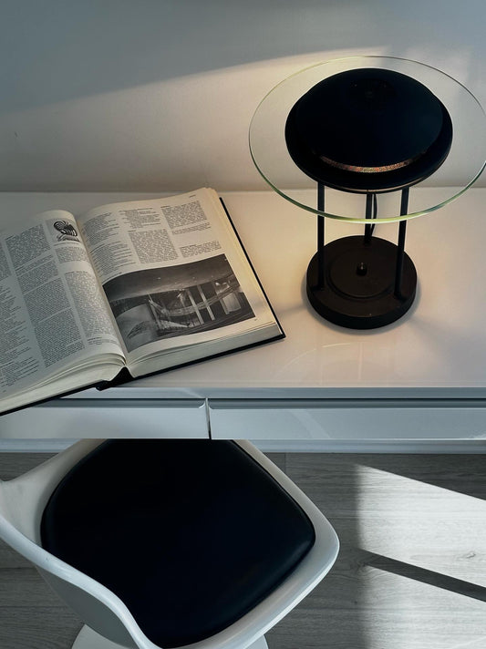 The 1980s black Saturn Desk Lamp in the style of Robert Sonneman