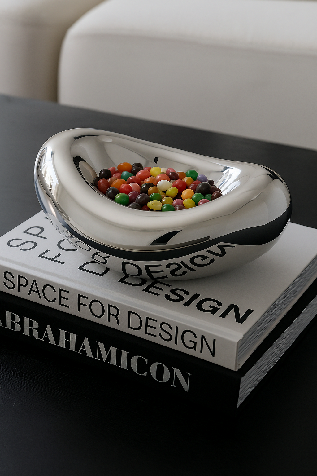 It adds a modern pop to any table or shelf. Handcrafted food-safe polished aluminum.