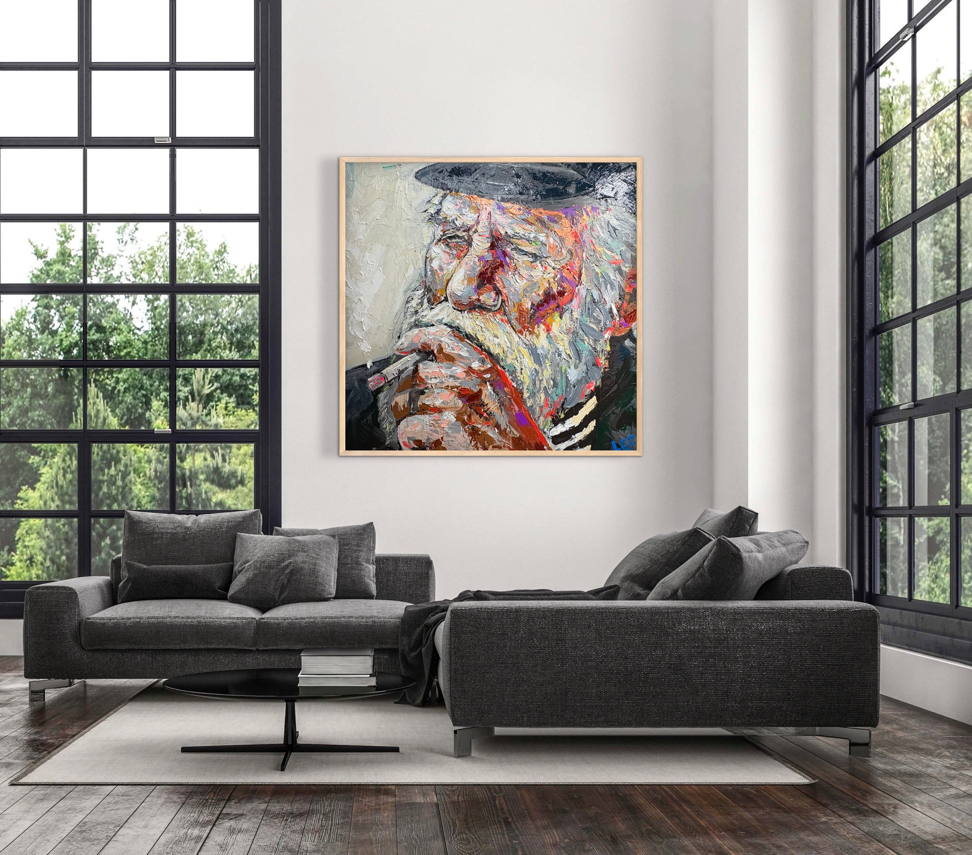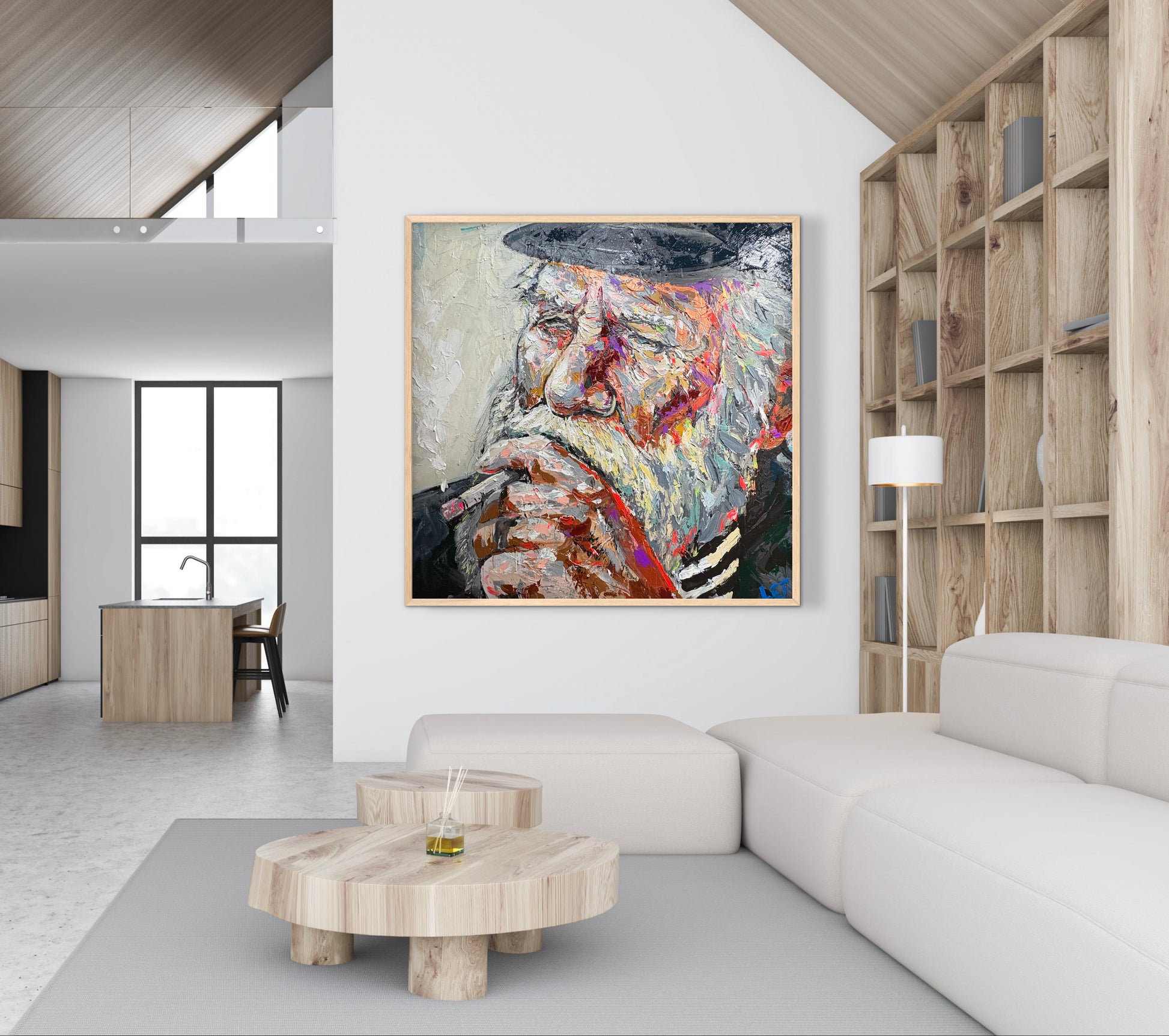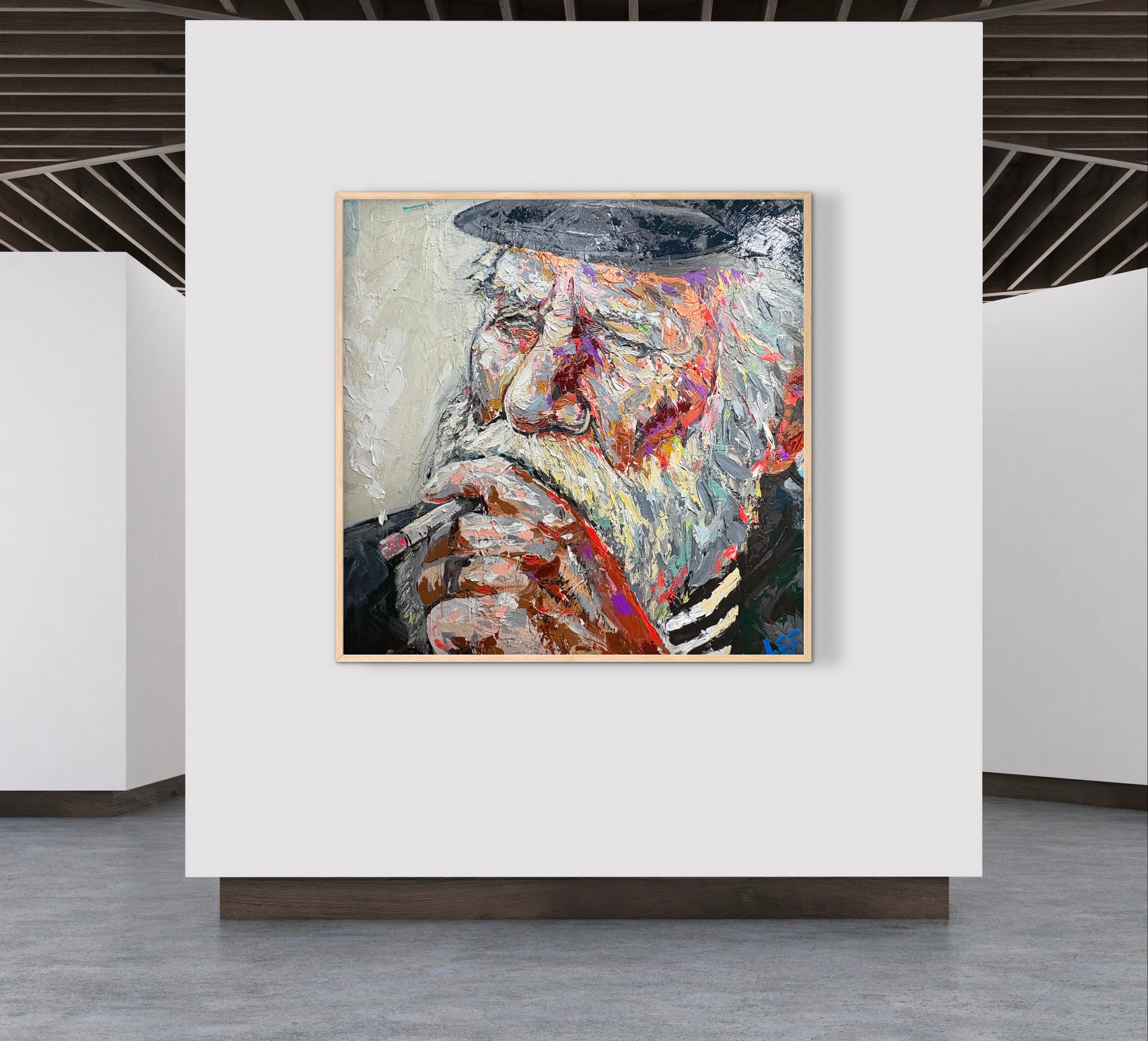 This portrait depicts a man smoking, rendered through heavy impasto and assertive, visible brushstrokes. Thick layers of paint sculpt the face, with palette-knife textures and abrupt color transitions emphasizing volume, age, and psychological presence. The fractured surface and saturated tones heighten the sense of immediacy, transforming an intimate gesture into a study of materiality and expression