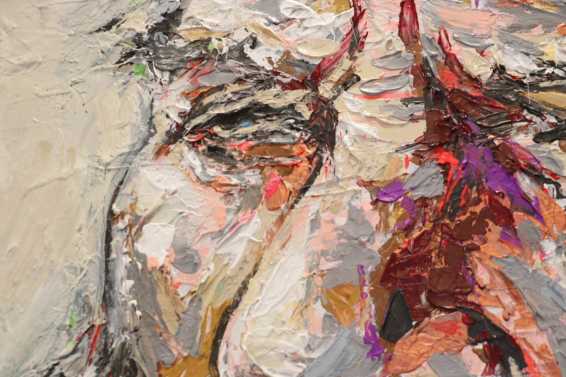 My practice focuses primarily on the interaction of colors and the intensity of the impressions they create. Whether applied with restraint or boldness, the sometimes fluorescent marks present in my work generate a strong sense of movement and bring modernity and vitality to the canvas. The material itself is worked with a palette knife to create relief and give character to the subject. I paint instinctively and through improvisation, embracing risk and continually renewing my practice by setting new challenges that push me beyond my comfort zone and force me to question my way of painting.