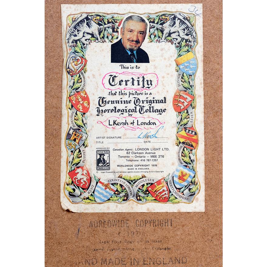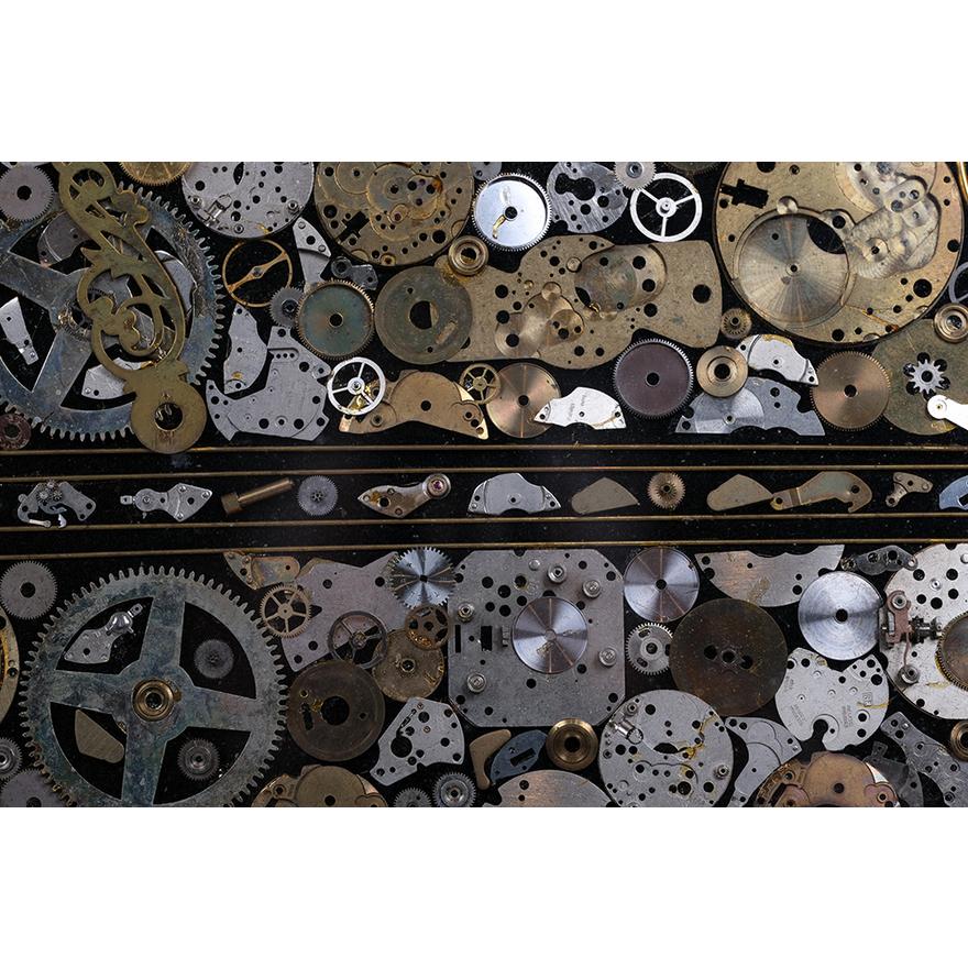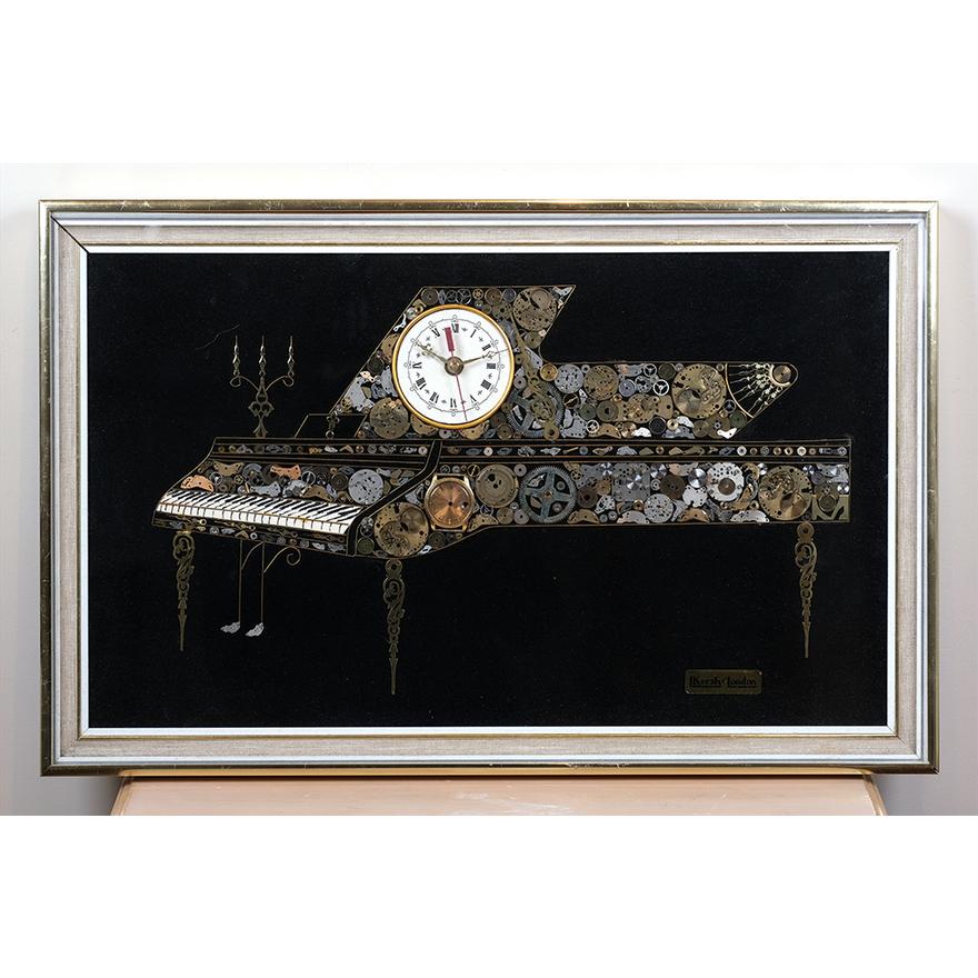 Frame representing a piano composed of various clockwork mechanisms. By artist L. Kersh of London, 1976.