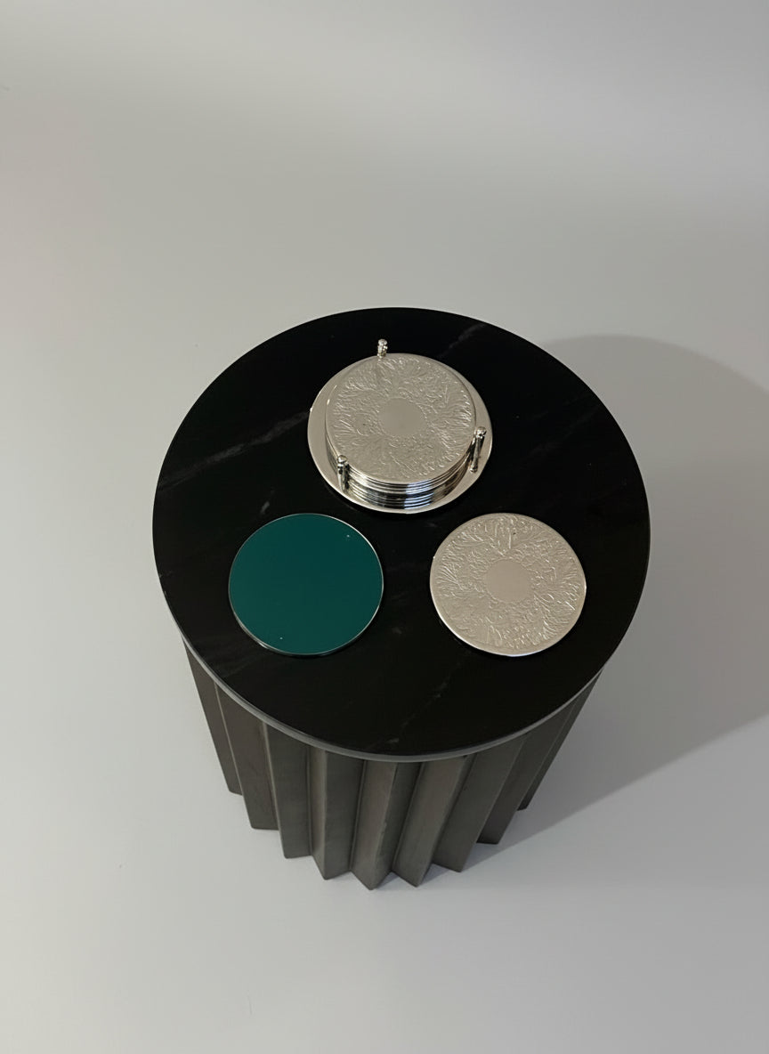 The craftsmanship stands out — the coasters have a refined weight, a polished finish, and a classic decorative motif that gives them a sophisticated, vintage charm.