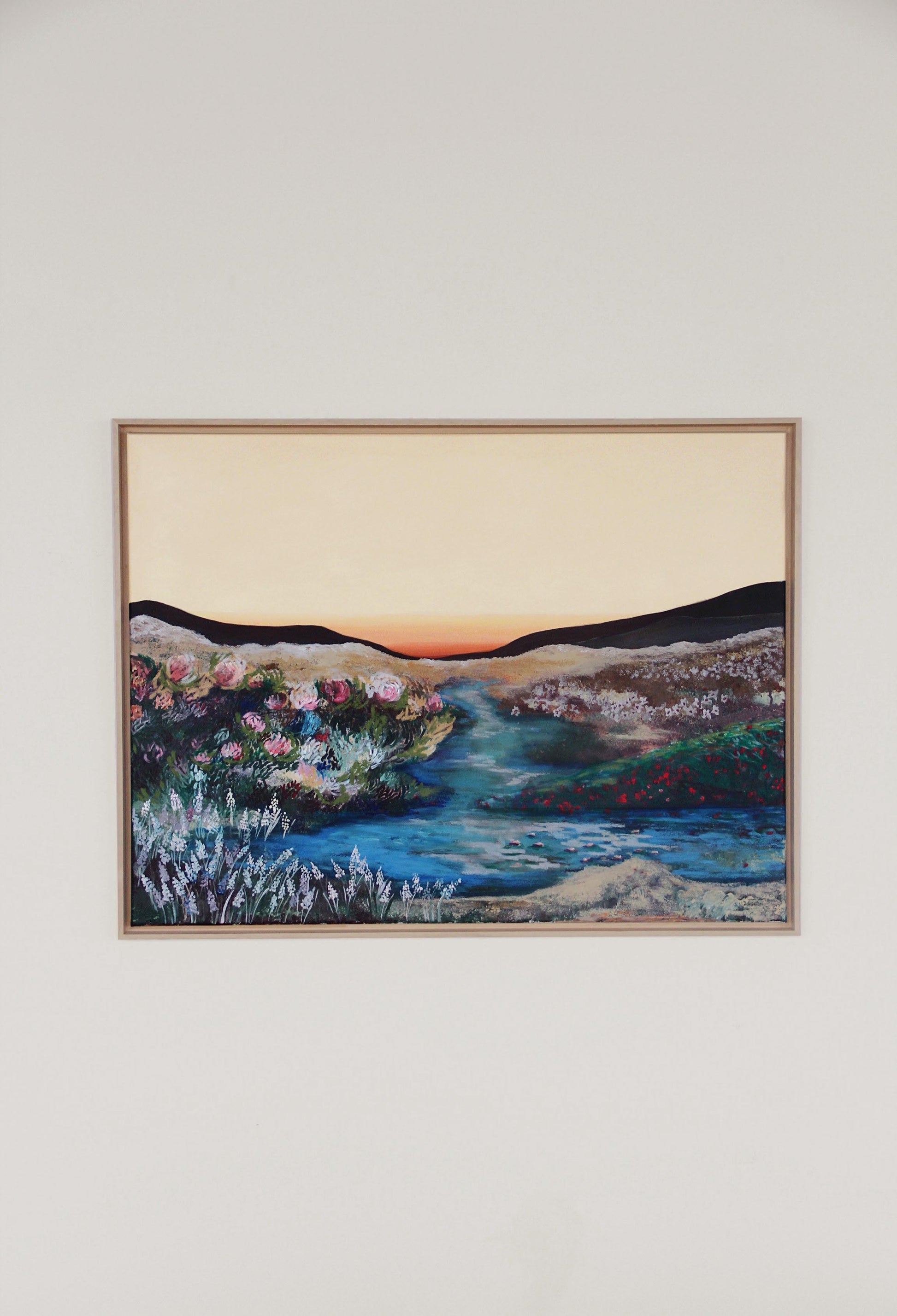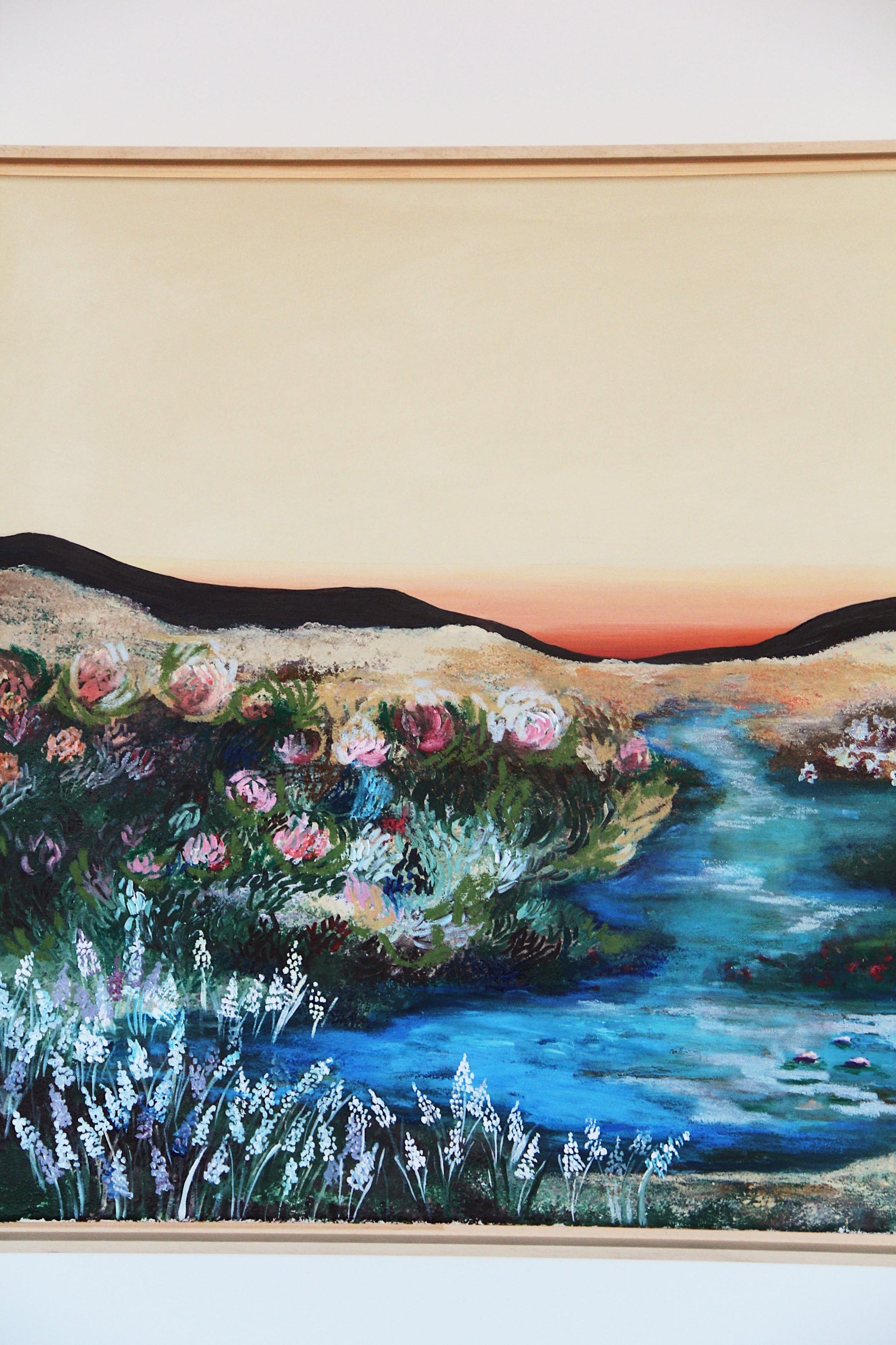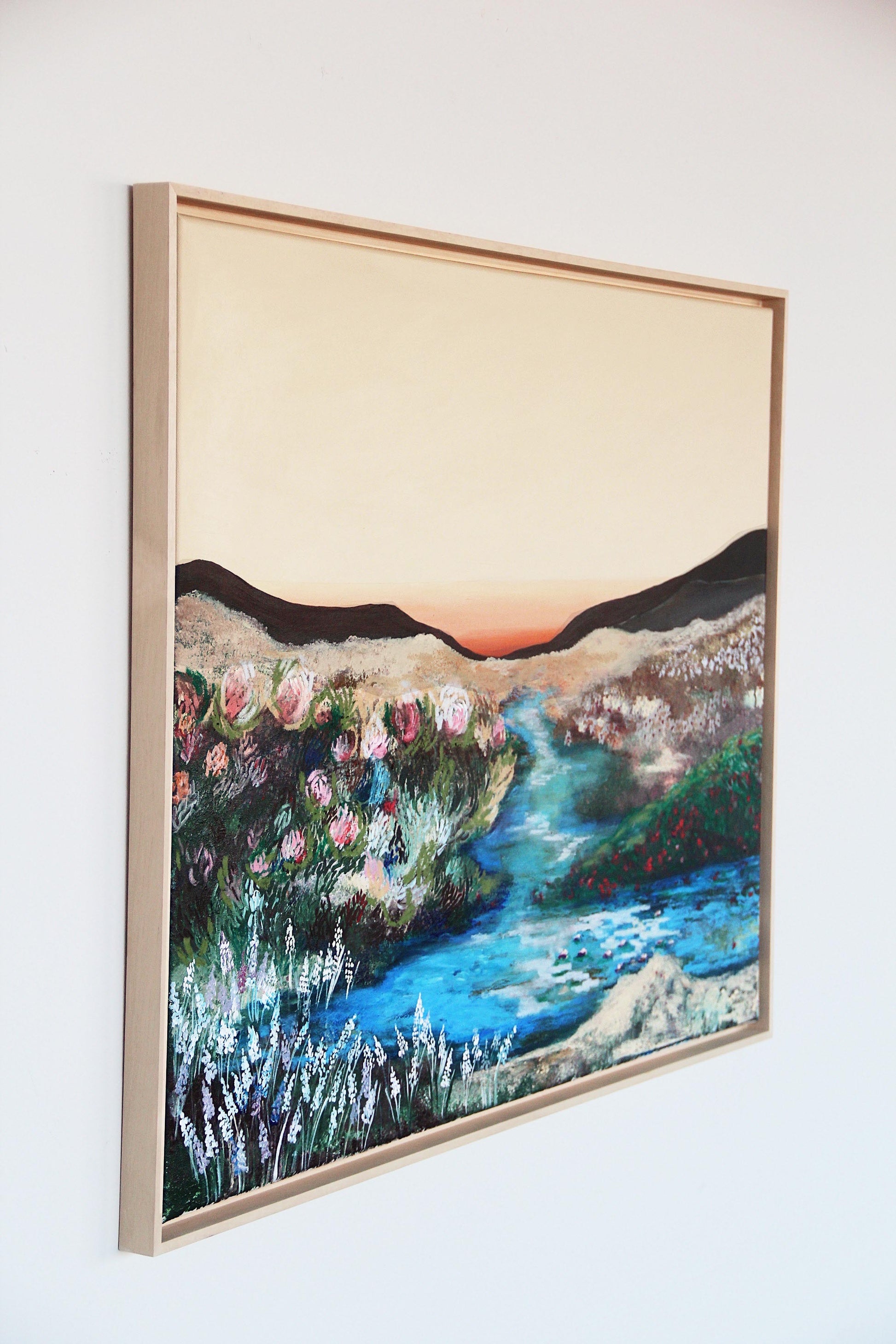 The painting is framed in a high-quality natural wood frame by the Montreal-based framer Encadrement Olympic.